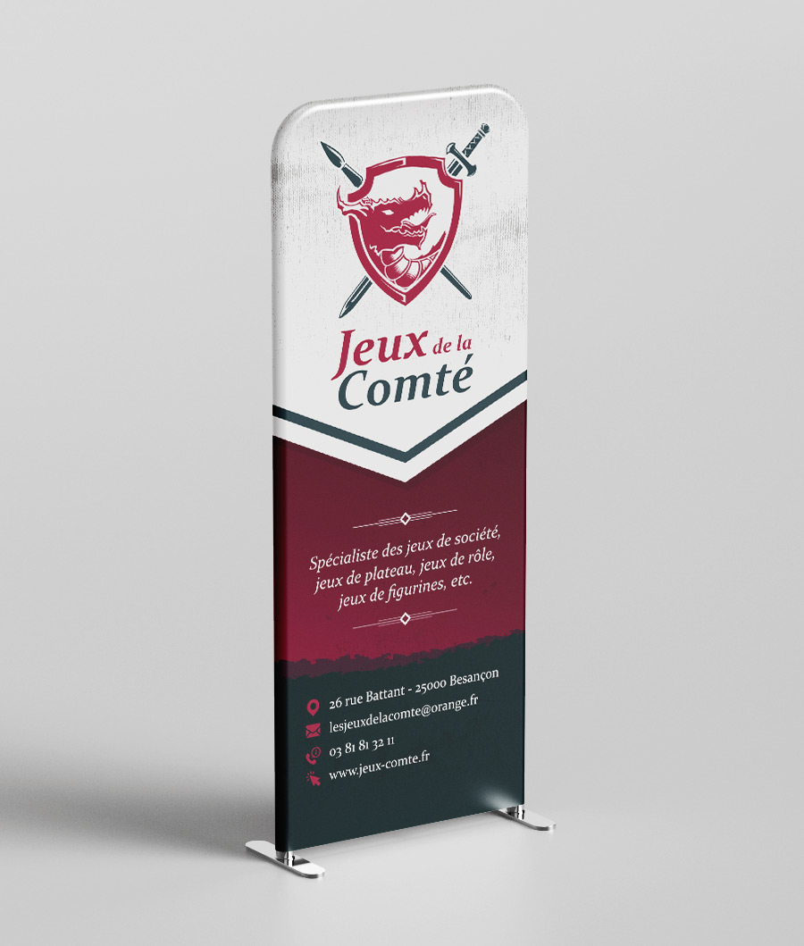 De la carte de visite au Roll-up / Kakemono, en passant par des nappes sur-mesure, la charte graphique et le logo se déclinent sous plusieurs formes et supports pour renforcer l’image qualitative et professionnelle des Jeux de la Comté.