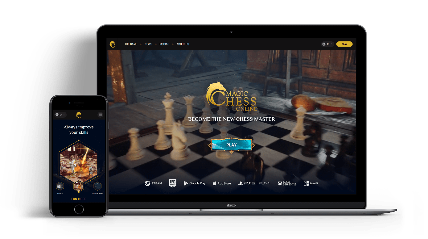 L'équipe de Magic Chess Online basée à Marseille nous a contacté afin de réaliser la conception sur-mesure de leur site web. Nous avons échangé ensemble sur la direction à prendre et la dynamique à apporter au site internet afin de réaliser un site web interactif, vivant et le plus fidèle aux visuels et à l'interface du jeu. Ce site a pour vocation de présenter les différents concepts du jeu et de permettre aux joueurs d'échecs de comprendre et de profiter de toutes les fonctionnalités que le jeu peut proposer.